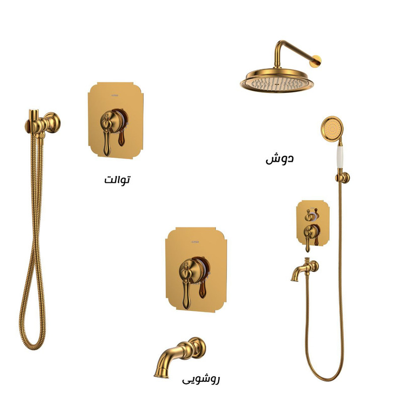 ویژگیهای شیرآلات: اهرمی , دارای شیلنگ , رنگ براق , سردوش سیار , مجهز به سردوش