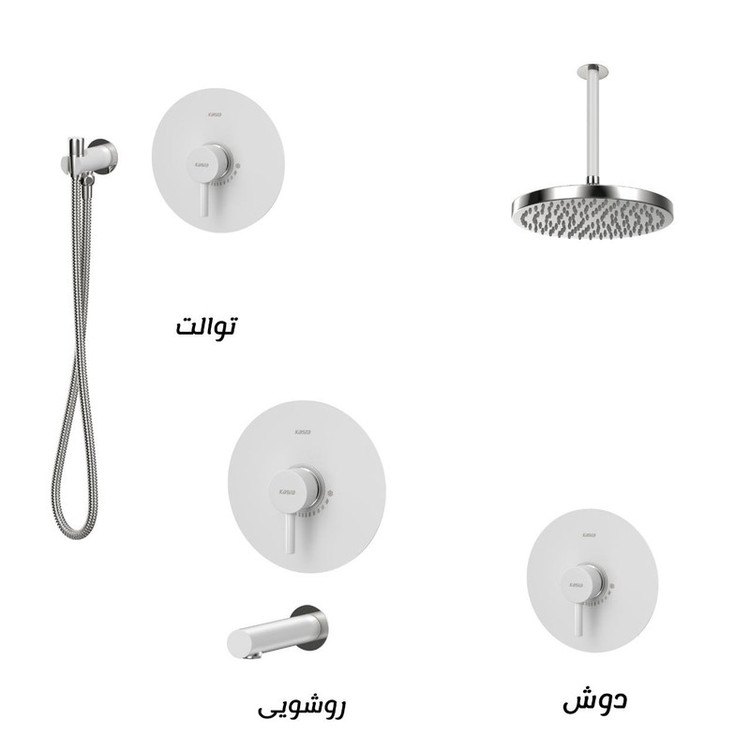 ویژگیهای شیرآلات: اهرمی , دارای شیلنگ , رنگ براق , سردوش سیار , مجهز به سردوش